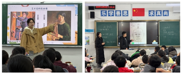 此次公开课以七年级美术课《自画像》为教学内容。两名实习生课前精心打磨教学设计,课堂上,教态自然大方,展现了较扎实的教学基本功,教学设计完整流畅,有效引导学生参与课堂互动,获得了听课人员的初步肯定。课后点评环节,指导老师重点指出课程在美育内容渗透方面的不足,建议进一步挖掘《自画像》背后的审美价值与人文内涵,让美术教学真正实现以美育人、以文化人。