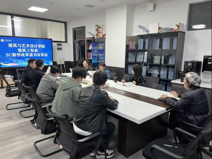 本次读书会由燕佩老师担任领读人,带领全体教师深度研读华中科技大学赵炬明教授《论新三中心:概念与历史》核心文献,系统梳理了SC 教学改革的起源脉络、发展历程与核心内涵。文献中提出的 “新三中心”—— 以学生发展为中心、以学生学习为中心、以学习效果为中心的教学理念,引发了在场教师的广泛共鸣,大家随即结合建筑工程专业教学实际,就如何破除传统 “教材、教师、教室” 老三中心教学模式,构建以学生成长为导向的新型教学范式展开热烈研讨。