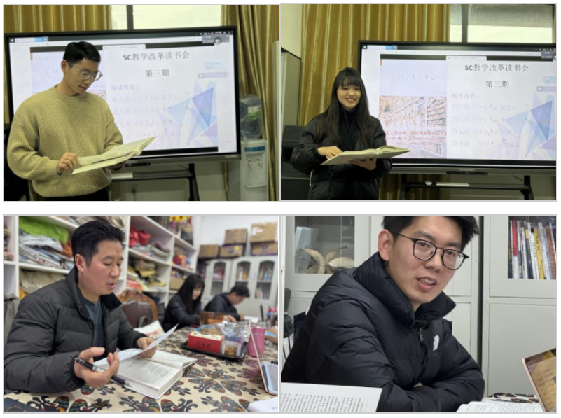 (撰:朱慧审:向美玲)为持续推动SC(以学生为中心)教学改革在美术系落地生根,促进理论学习与教学实践深度融合,12月24日,美术系开展SC教学改革读书会第三期活动。美术系全体教师参会,以赵炬明教授《以学生为中心-当代本科教育改革之道》为核心读物,在前期学习基础上,重点围绕第五章“助力学习:学习环境与教育技术”、第六章“质量保障:建设全校统一的教学质量保障体系”、第七章“关注效果:课程学习效果评价方法述评”、第十章“领导改革:SC改革的组织与管理”展开专题研讨,分别由葛宇、朱慧、张彬、贺成成四位老师依次领学,进一步明晰美术系SC教学改革的推进思路与实操方法。