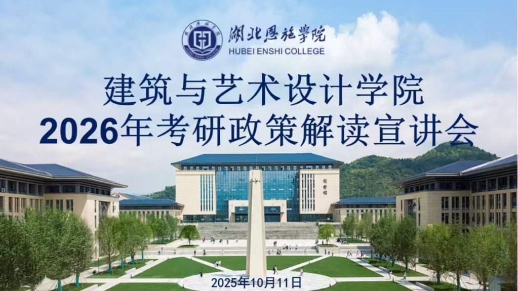 (文/邱艺宁 余欣怡 审/黄毓寰)2025年10月11日,湖北恩施学院建筑与艺术设计学院举办了“2026年考研政策解读宣讲会”线上直播活动,为考研学子全方位解析考研政策、择校规划及就业趋势,助力学生明晰备考方向。讲座首先从就业与学历背景方面剖析了建筑与艺术设计类专业的就业门槛,同时指出,学校和学历背景已成为诸多行业的求职门槛,凸显学历提升的重要性。此外,讲座还梳理了进入体制的机会,如事业单位考试、公务员考试等...